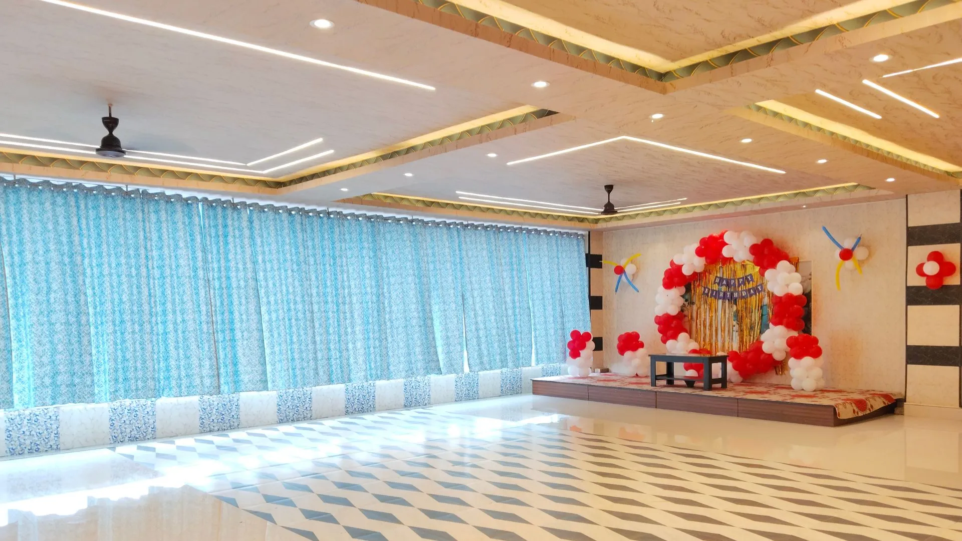 Radha Hall Of Ramsan offers a grand hall for 30 and a lush garden for 50, perfect for birthdays, meetings, engagements, and weddings with elegance.